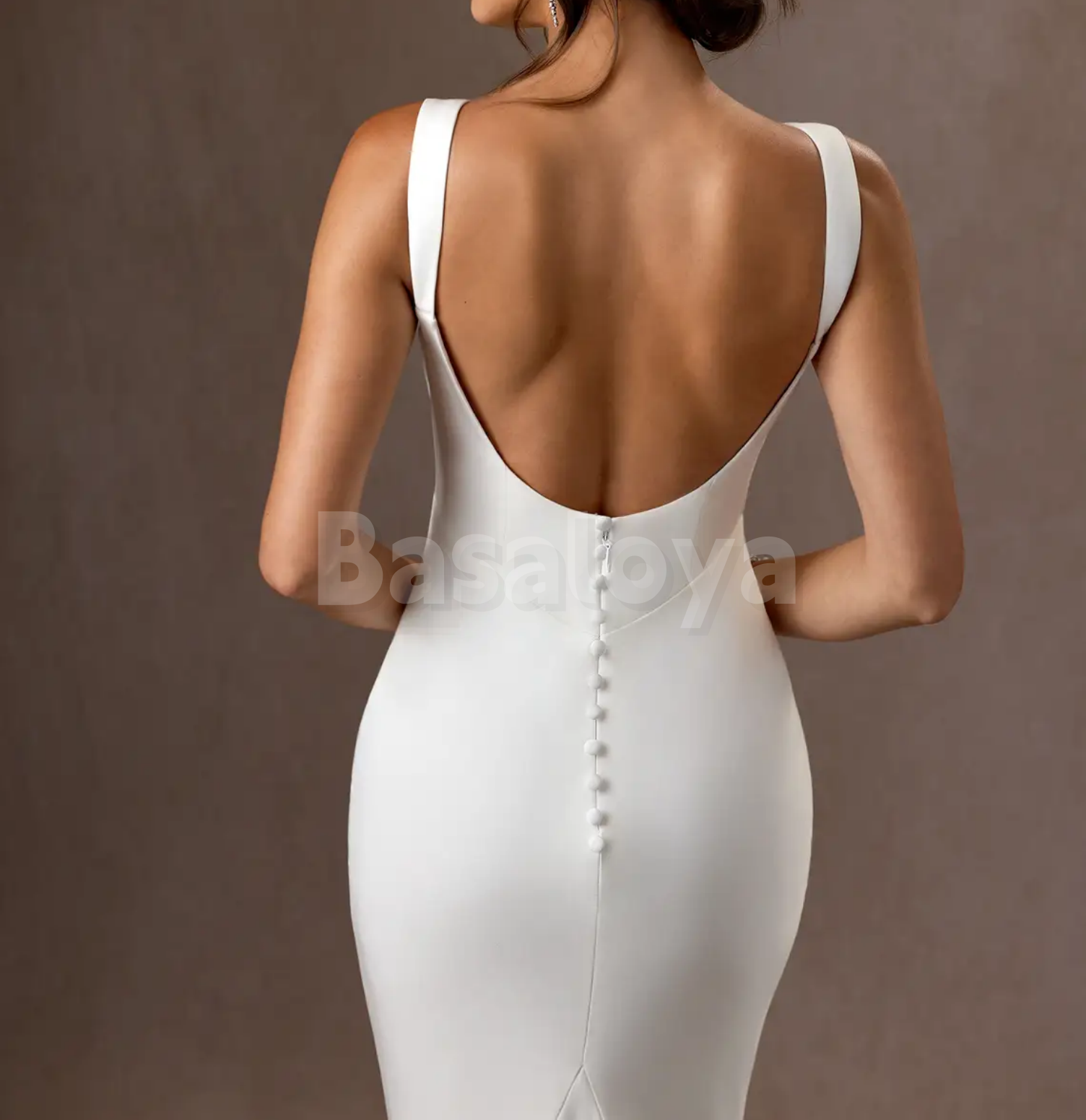 This elegant white sleeveless mermaid wedding dress features a flattering silhouette that accentuates the figure while offering timeless sophistication. Designed with a graceful train, it adds a dramatic yet refined touch to your bridal look. Crafted for comfort and style, this gown combines classic bridal elegance with modern tailoring to ensure you feel confident and radiant on your special day.